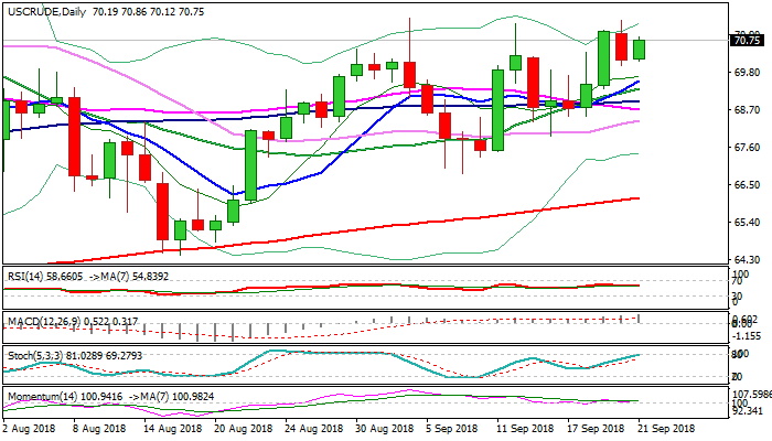 However, bulls still face strong headwinds from barriers at $71.20/30 zone ( Fibo 61.8% of $75.34/$64.43 descend) where triple upside rejection was registered in recent sessions, on repeated failure to close above Fibo barrier.