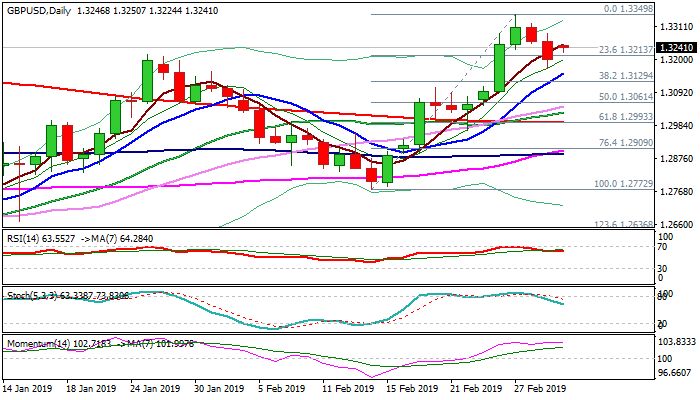 Two-day pullback from new high at 1.3349 found footstep at 1.3172, keeping pivotal supports at 1.3155 (10SMA) and 1.3129 (Fibo 38.2% of 1.2772/1.3349) intact and reducing risk of deeper pullback for now.