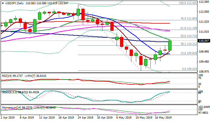 Firm break above key Fibo barrier at 110.31 (38.2% of 112.40/109.02 descend) signaled bullish continuation as fresh rally penetrated rising daily cloud (base lays at 110.43) and cracked 100SMA (110.50), pressuring 20SMA (110.60) and Fibo 50% barrier (110.71).