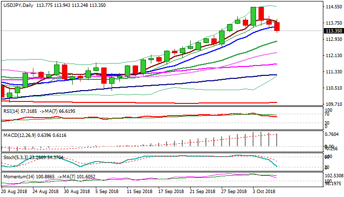 Weakening momentum studies on daily chart support scenario, which needs close below 200WMA to generate bearish signal for deeper correction of 110.38/114.54 ascend and confirm top at 114.54.
