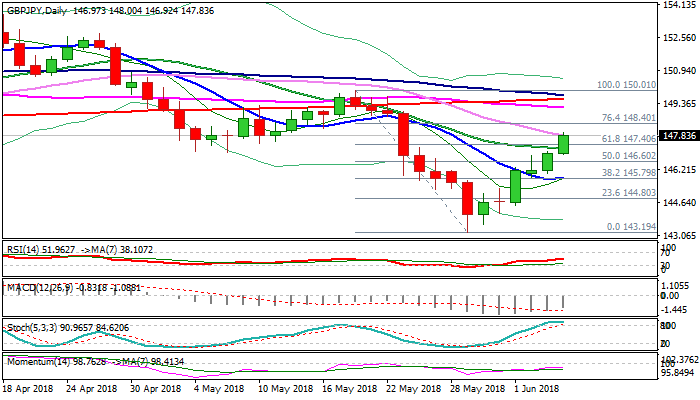 The cross holds firm tone on Wednesday and extends recovery rally from 143.19 (29 May low) into sixth straight day.