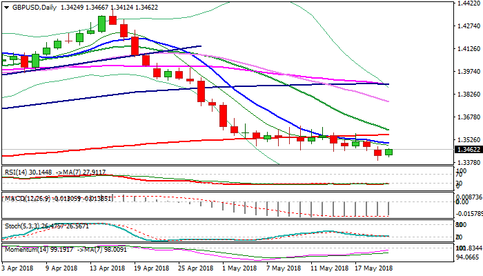 Pound stands at the back foot as close below 1.3451/42 (former range floor / Fibo 38.2% of 1930/1.4376 rally) was strong bearish signal which needs confirmation on repeated daily close below, to signal continuation of steep descend from 1.4376 (post-Brexit recovery peak).