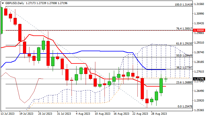 GBPUSD strong recovery of past three days lost traction after testing the base of thick daily Ichimoku cloud (spanned between 1.2724 and 1.2918), as increased headwinds were anticipated at this zone.