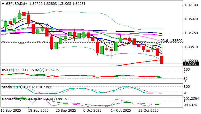 Cable hit three-month low on Wednesday, extending the steep bear-leg which emerged after strong upside rejection at daily cloud, into second consecutive week.