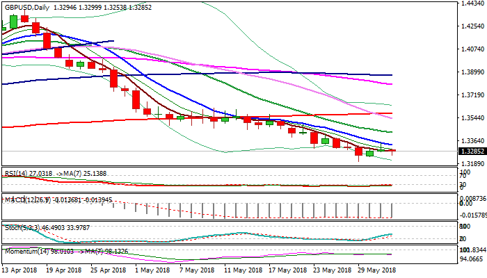 Daily / weekly techs are in strong bearish setup and keep the downside in focus for renewed attack at key 1.3205 support, where top of weekly cloud offered a footstep for larger downtrend from 1.4376.