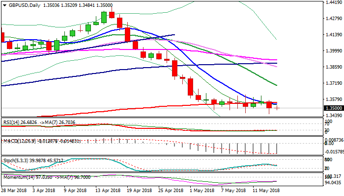 Cable holds within narrow range in early Wednesday’s trading with near-term structure being negatively aligned following Tuesday’s close in red and brief probe through key support at 1.3460.
