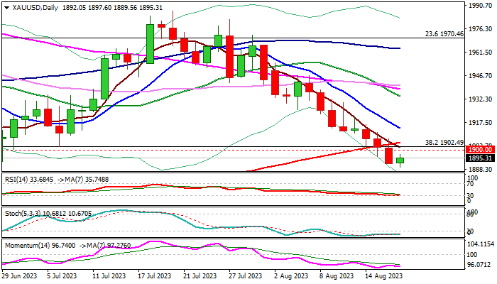 Wednesday’s close below key supports at $1900 zone (200DMA – $1905; Fibo 38.2% of $1614/$2080 – 1902; psychological – $1900 and former low of June 29 – $1892) generated strong bearish signal.