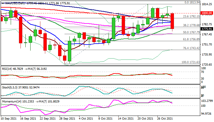 This would weigh on near-term action and spark deeper correction, as fresh weakness already broke below $1778 pivot (Fibo 38.2% of $1721/$1813) with daily close below here to add to negative signals.
