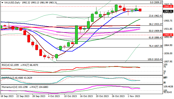 Extended consolidation should be ideally contained above $1962/56 (Fibo 23.6% of $1810/$2009 / rising 20DMA) to keep larger bulls intact, though deeper dips cannot be ruled out, but not to be very harmful for overall bullish picture while holding above pivotal supports at $1934/33 (200DMA / Fibo 38.2%).