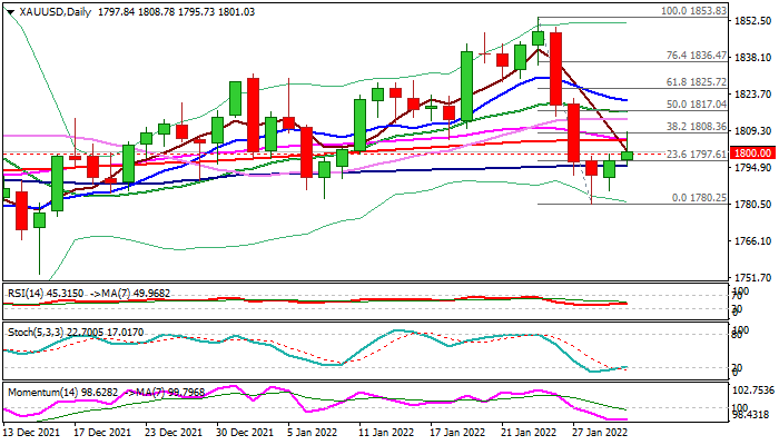 Spot gold regained traction after last week’s sharp post-Fed fall and bounced above key $1800 level.