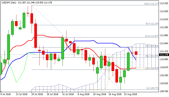 Conversely, bullish scenario requires break and close above daily cloud (cloud top lays at 111.62) to generate bullish signal for continuation of recovery rally from 109.77 (21 Aug low).