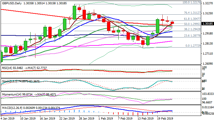 Weekly close above cracked 1.3047 Fibo barrier (61.8% of 1.3217/1.2772) would reinforce bullish signals and keep focus at 1.3217 peak (25 Jan).