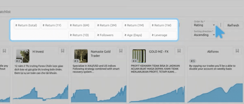 This filtering capability helps traders move beyond simple rankings and instead focus on disciplined strategy providers whose performance aligns with their investment goals.