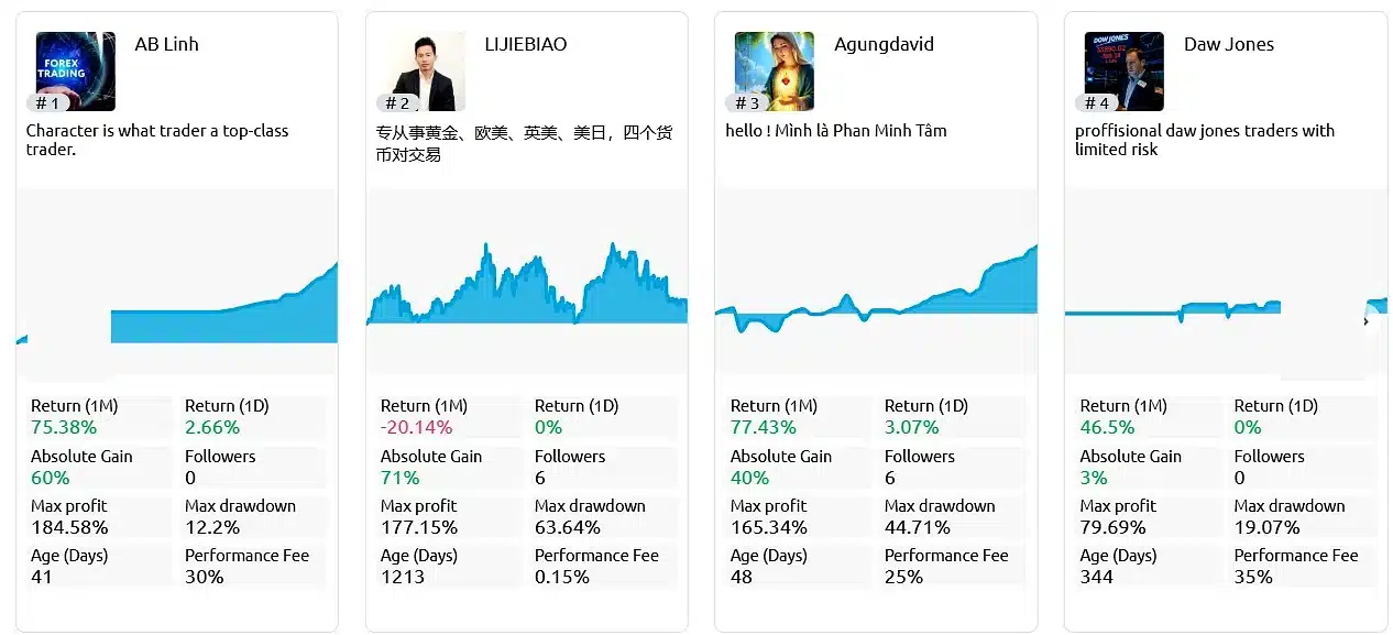 The platform provides transparent performance data, enabling traders to evaluate key metrics such as profitability, drawdown levels, trade history, and strategy consistency before deciding who to follow.