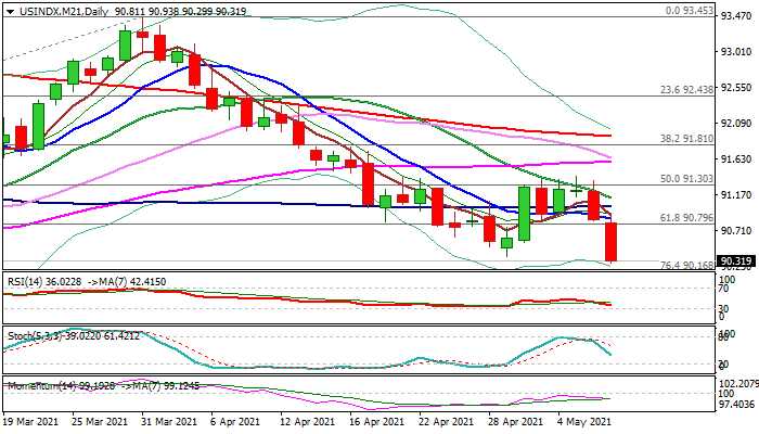 Bears eye pivots at 90.16/00 (Fibo 76.4% of 89.15/93.45 rally / psychological) and could extend towards key points at 89.66/15 (Feb 25 spike low / 2021 low, posted on Jan 6, the lowest since Apr 2018).