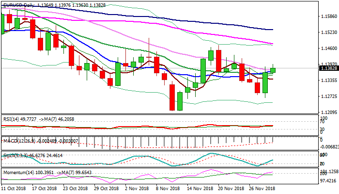 Bulls eye targets at 1.1433 (22 Nov high) and 1.1472 (20 Nov high / falling 55SMA).