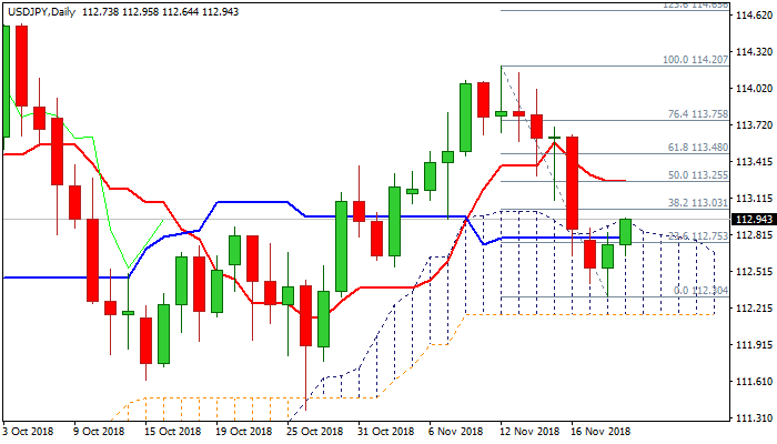 Recovery attacks daily cloud top (112.94) with break here to generate bullish signal for extension towards next pivots at 113.03 (Fibo 38.2% of 114.20/112.30) and 113.25 (Fibo 50% / daily Tenkan-sen).