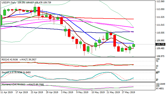 The pair is still lacking clearer direction signals, which will be generated on sustained break above 20SMA (bullish) or eventual break below pivotal support at 109.02 (13 May low) (bearish).