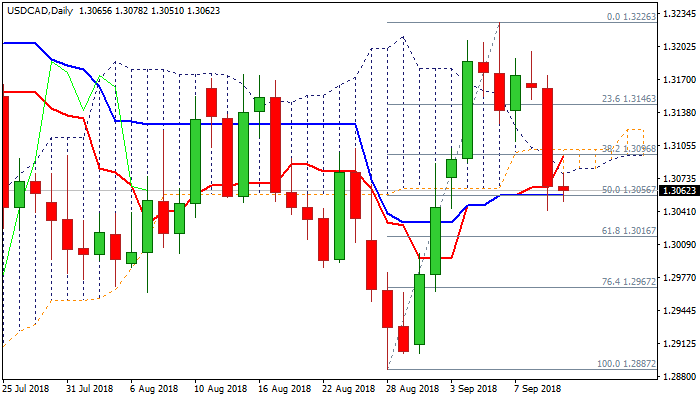Near-term outlook is expected to remain negative while the price stays below daily cloud (spanned between 1.3077 and 1.3102), reinforced by falling 55SMA (1.3093).