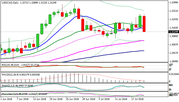 Bearish acceleration retraced 76.4% of 1.3064/1.3289 recovery leg and pressures support at 1.3110, the last obstacle towards higher base at 1.3065 and psychological 1.30 support, also top of rising daily cloud.