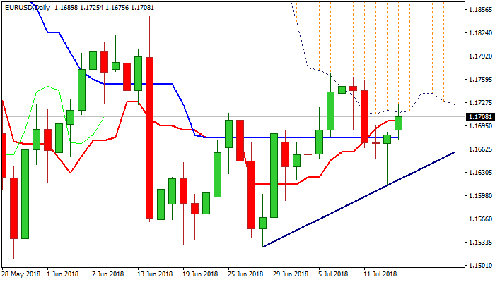 Friday’s hammer signaled further recovery which resulted in extension and test of strong barrier at 1.1713, provided by daily cloud base, with initial probe through cloud base, being so far unsuccessful.