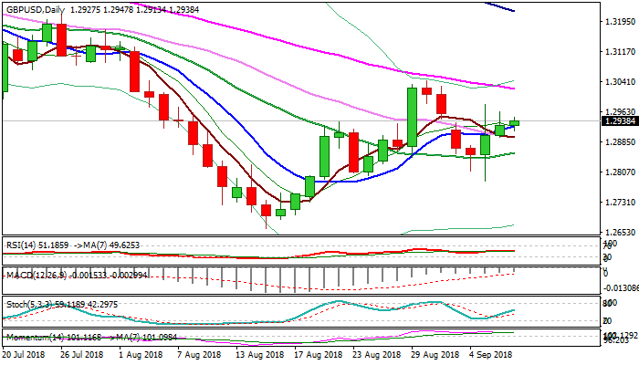 North-turning 20SMA (1.2857) marks lower pivot, loss of which would generate stronger bearish signal, while break above falling 55SMA (1.3022) would spark continuation of recovery leg from 1.2661 (15 Aug low).