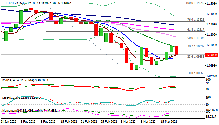 The risk is also seen on a drop and close below psychological 1.10 level (also near 38.2% retracement of 1.0806/1.1137 recovery).