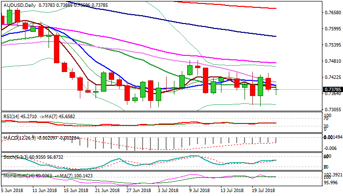 Strong number could offer fresh support to the Aussie for eventual break through 0.7440 pivot and acceleration towards key barriers at 0.7474 (55SMA) and 0.7483 (10 July high).