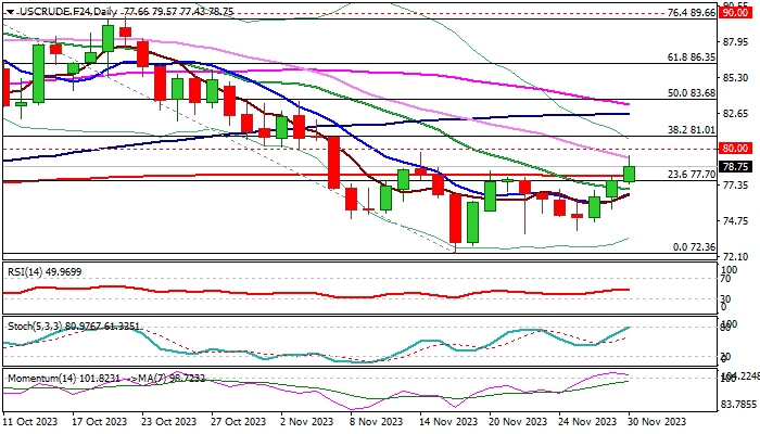 WTI oil price rose above $79 for the first time in two weeks on Thursday, as fresh bullish acceleration extends into third consecutive day.
