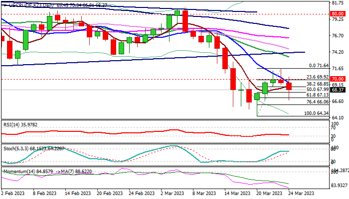 Fresh weakness also retraced more than a half of recent $64.34/$71.64 recovery leg, adding to signals that corrective phase might be over.
