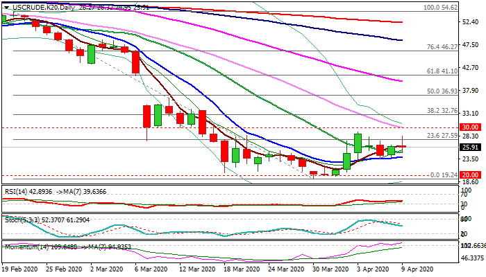 WTI oil price jumped to $28.32 (session high and the highest in almost one week) after news that Russia and Saudi Arabia have overcome differences and basically reached a deal of production cut.