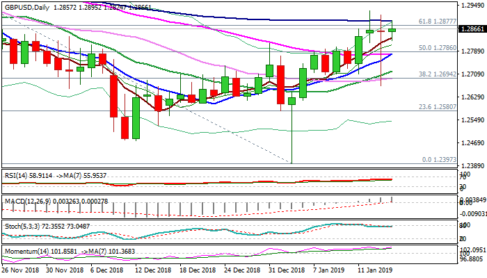 Fresh bulls attack again key barriers at 1.2882/94 (daily cloud top / 100SMA, with sustained break here to signal bullish continuation and expose psychological 1.30 barrier.
