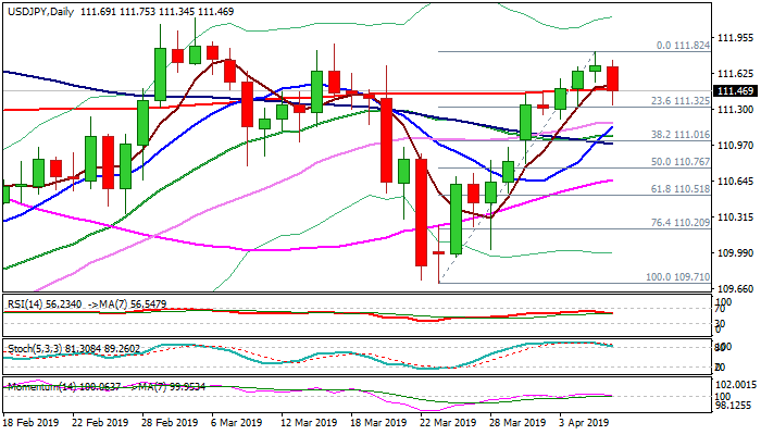 Strong supports lay at 111.18/00 zone (a cluster of daily MA’s / Fibo 38.2% of 109.71/111.82) and 110.72 (top of thickening daily cloud) where corrective action should be ideally contained to prevent deeper pullback that would sideline bulls.