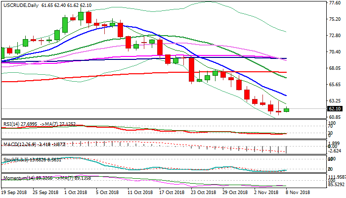 WTI oil is consolidating above new marginally lower 7 ½ month low at $71.19, posted on Wednesday in extension of massive fall which extends into fifth straight week.