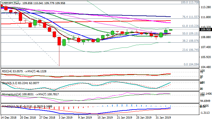 The pair maintains positive tone on Tuesday and holds near strong 110.00 barrier, but so far without clear break higher, despite Monday’s spike to 110.16 (new 2019 high).