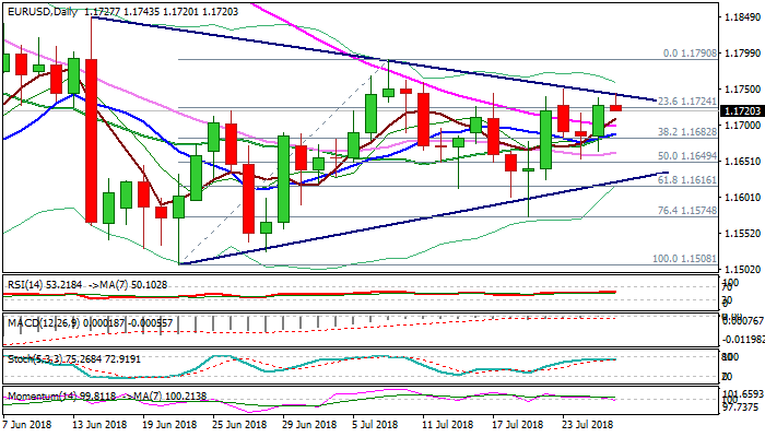 Wednesday’s penetration and close within thick daily cloud was bullish signal, which was reinforced by close above pivotal 1.1718 barrier (Fibo 61.8% of 1.1848/1.1508 descend).