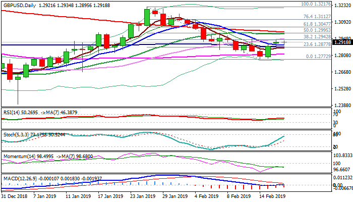 Two-day recovery from 1.2772 low was capped by pivotal Fibo barrier at 1.2942 (38.2% of 1.3217/1.2772), reinforced by 30SMA, as fresh bulls lost momentum.