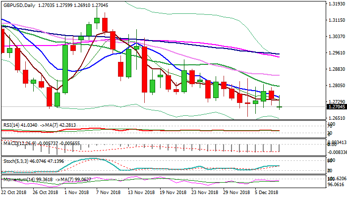 Cable dipped to new session low at 1.2691 and reversed overnight’s recovery to 1.2755 after gap-lower opening on Monday and dip to Asian low at 1.2702.
