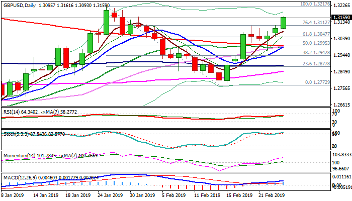 Fresh rally surged through 1.3112 Fibo barrier (76.4% of 1.3217/1.2772), the last obstacle en-route to 1.3217 target (2019 high), which kept the upside limited in past few sessions.
