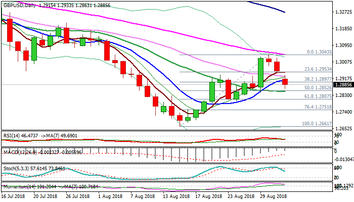Fresh weakness pressures next pivotal support at 1.2850 (20SMA), close below which would generate bearish signal for further easing.