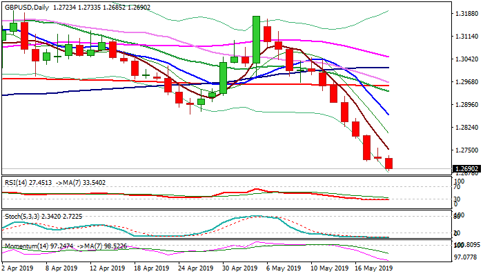 Fresh weakness probes below 1.2700 round-figure support and eyes target at 1.2668 (15 Jan spike low), driven by persisting fears of no-deal Brexit.