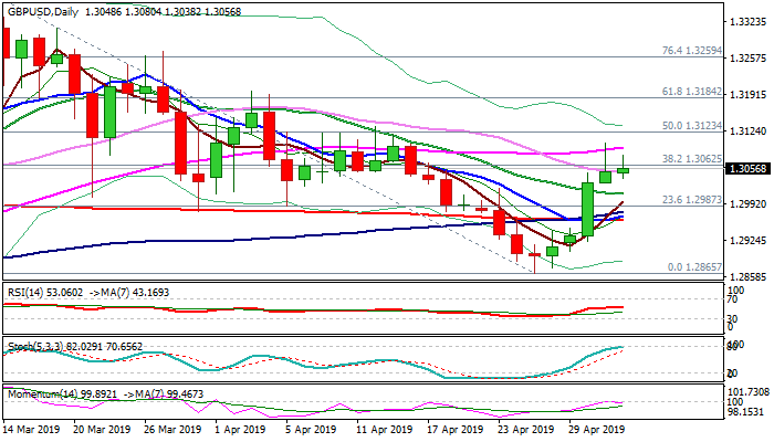 Fresh advance probes again above 30SMA and Fibo 61.8% barriers at 1.3050/62, after the pair spiked to 1.3102 on Wednesday, but failed to close above these barriers.