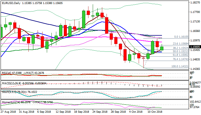 The Euro extended weakness in early Monday’s trading, following Friday’s close in red, but dip found footstep at 1.1538 (just below daily cloud base / Fibo 38.2% of 1.1432/1.1610 upleg).