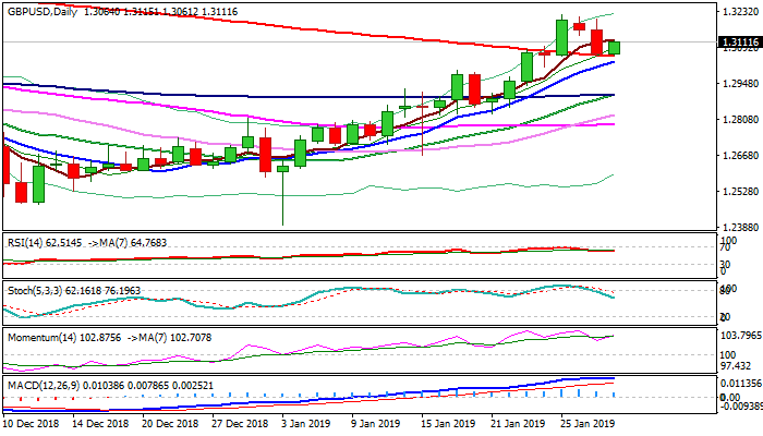 Ability to hold above 200SMA would maintain bullish bias for retest of 1.3217 peak and possible extension of larger uptrend December’s low at 1.2476.