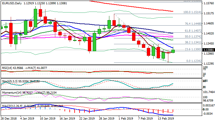 Recovery needs lift above 10SMA and extension and close above 1.1341 (Fibo 38.2% of 1.1514/1.1234/ last week’s highs) to generate bullish signal for stronger recovery and expose a cluster of daily MA’s at 1.1364/1.1402 zone.