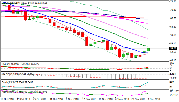 The oil was up 2.5% for the day so far and fresh bullish acceleration pressures pivotal barrier at $54.80 (Fibo 61.8% of $58.14/$49.40 bear-leg, reinforced by falling 20SMA).