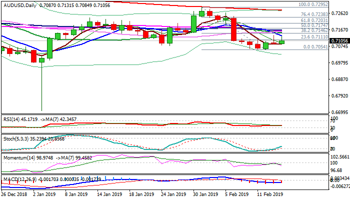 Initial bullish signal could be expected on sustained break above 0.7146 pivot, but fresh bulls would face another strong barriers, provided by a cluster of daily MA’s at 0.7151/64 zone and only firm break higher would confirm reversal.