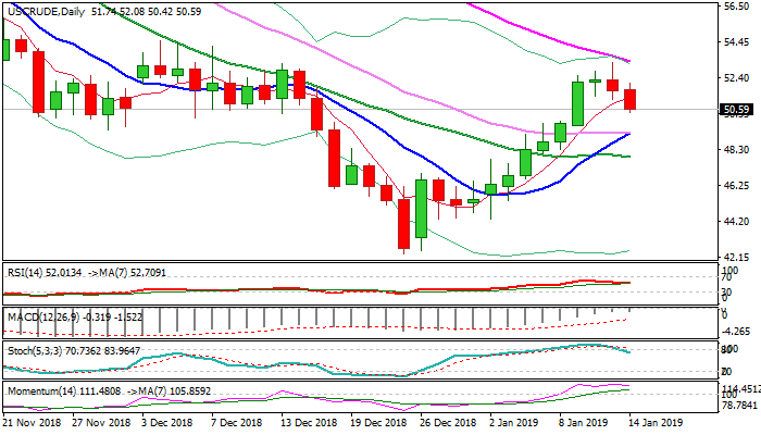 Correction comes after strong recovery in past two weeks when oil price advanced around 14% but failed to close above cracked 200WMA ($52.28).