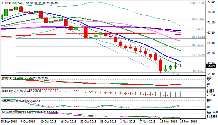 WTI oil price stands at the back foot on Monday and eased below $57 in European session after Friday’s Doji candle signaled that three-day recovery might be running out of steam.