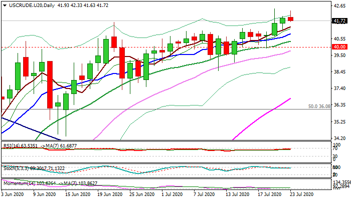 On the other side, unexpected rise in US crude inventories and news that Saudi Arabia’s oil exports dropped by 65% in May, weigh and may slow bulls on approach to strong barriers at $43.05 (200DMA) and $43.42 (Fibo 61.8% retracement of $65.63/$6.52 fall).